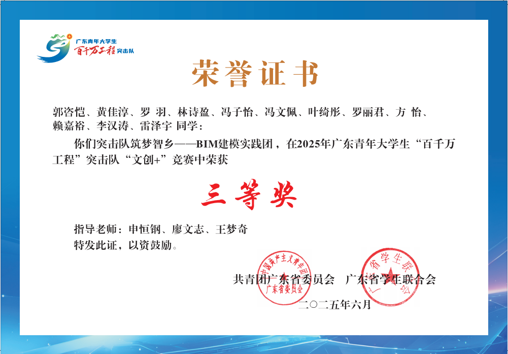 广东省技能大赛《水利工程BIM建模与应用》三等奖